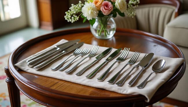 La manière dont vous disposez vos couverts sur la table parle de vous plus que vous ne le pensez. Ce simple geste révèle votre rapport aux traditions et votre attention aux détails. Une table bien dressée est une conversation silencieuse avant même le premier plat. Le langage secret des couverts bien ordonnés Votre disposition des fourchettes et couteaux suit des codes ancestraux. Les couverts placés avec précision témoignent d’un esprit méthodique et organisé. Chaque instrument trouve sa place selon une logique implacable. À gauche de l’assiette, les fourchettes s’alignent par ordre d’utilisation. La plus éloignée sert pour l’entrée, la plus proche pour le plat principal. Cette progression naturelle guide le convive tout au long du repas. La symbolique des positions à droite Les couteaux se placent toujours à droite, lame tournée vers l’assiette. Cette règle d’or combine sécurité et esthétique. La cuillère à soupe prend place à l’extrême droite, prête pour le premier service. Cette disposition reflète une personnalité qui valorise l’ordre et la tradition.