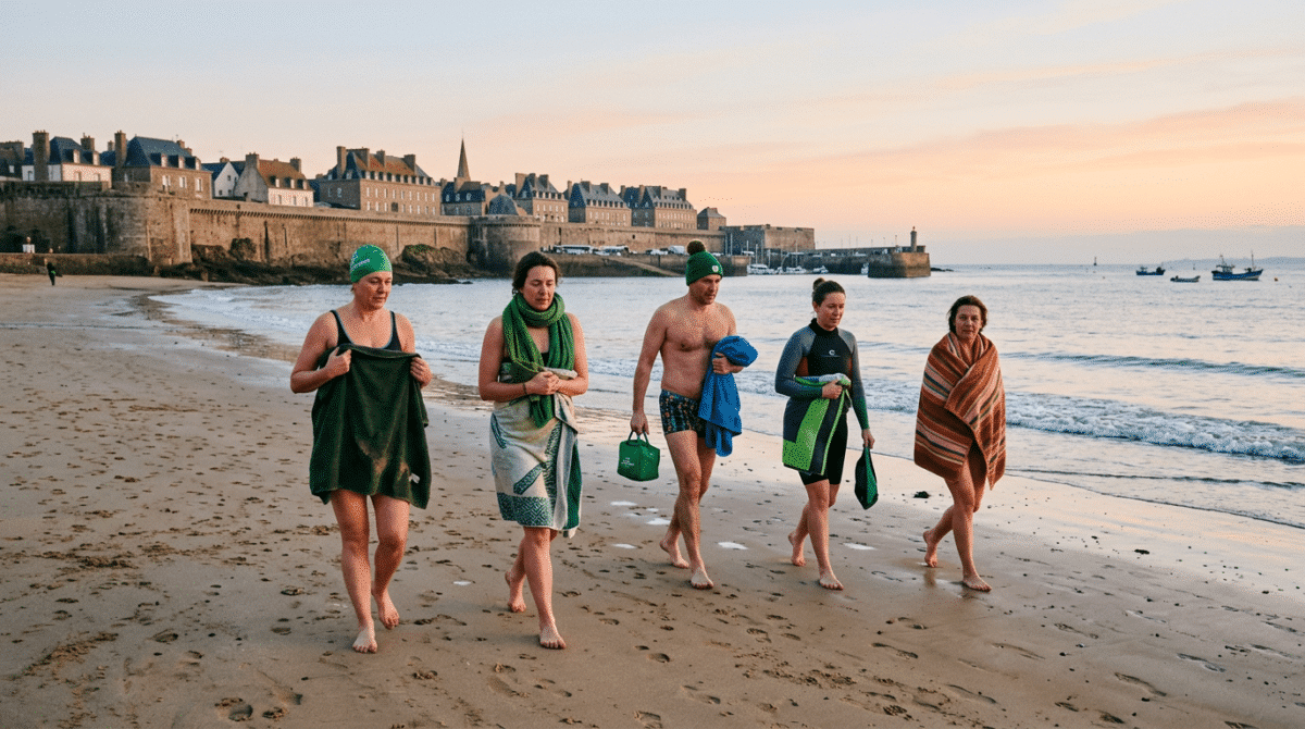 Sur la côte, l’idée s’impose presque d’elle-même. Des rendez-vous apparaissent autour de plages urbaines ou faciles d’accès, notamment dans des villes où la culture du bain existe déjà, sur la façade Atlantique, en Manche, et en Méditerranée quand la météo le permet.