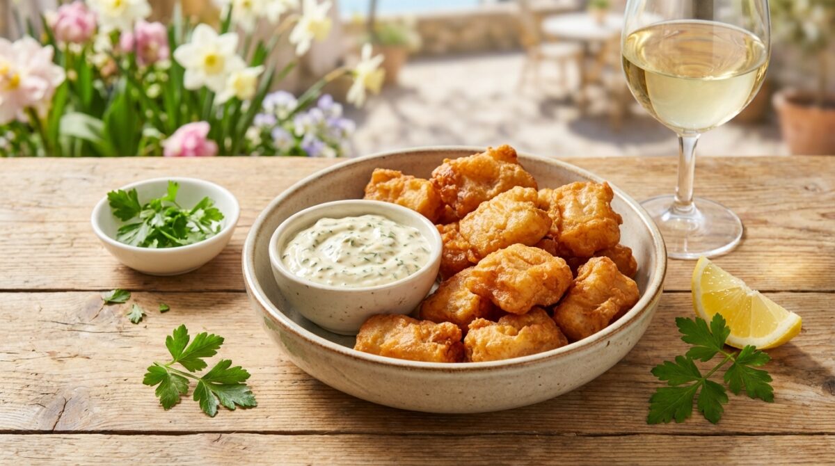 Knapperig, fris en klaar in 25 minuten: snelle lente-kibbeling met saus