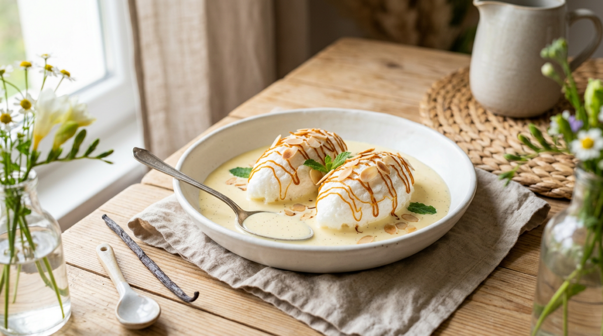 Moelleuse, vanillée et prête en 25 min : l’île flottante qui parfume toute la maison